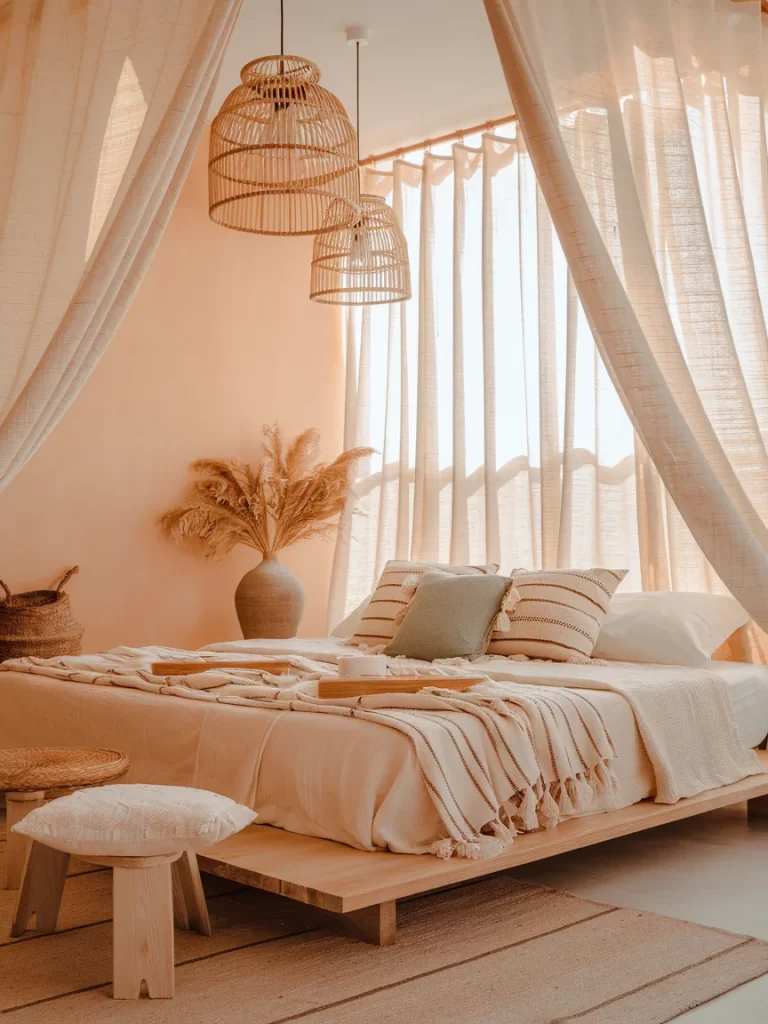 Whether you’re designing a master suite, guest room, or children’s space, this versatile style adapts beautifully to any bedroom size or function. From dramatic statement pieces like oversized pendant lights to subtle details like seashell collections, beachy boho design creates spaces that feel both relaxed and inspiring – perfect for rest and rejuvenation.