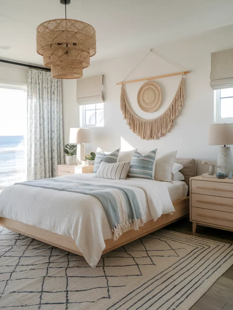 Escape to your own coastal paradise with beachy boho bedroom design – a dreamy fusion of laid-back beach vibes and free-spirited bohemian style. This aesthetic celebrates natural textures, handcrafted details, and sun-kissed color palettes that instantly transport you to a seaside retreat.