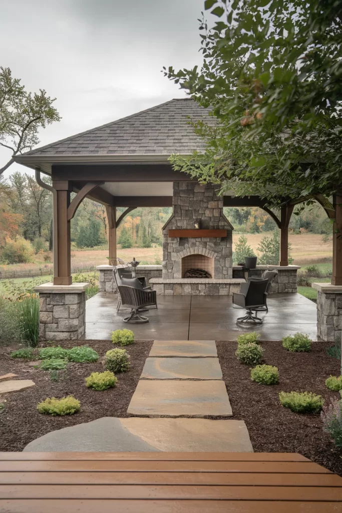 Craftsman-Style Pavilion with Elevated Stone Fireplace