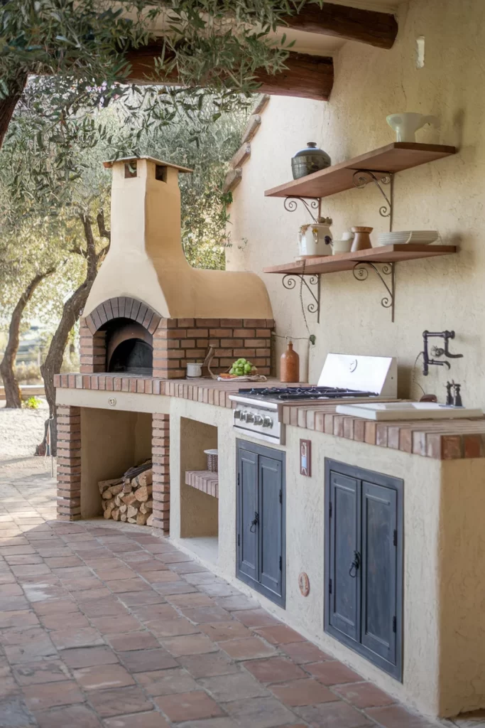 Mediterranean-Style Kitchen with Wood-Fired Oven