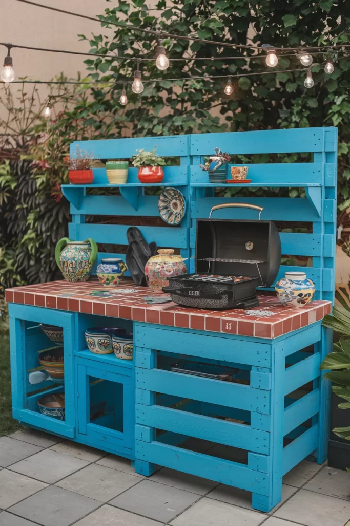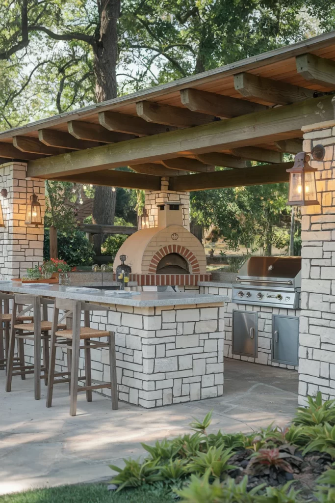 This guide brings together a variety of unique outdoor kitchen ideas i.e. ranging from Mediterranean wood-fired ovens and elegant stone islands with pergolas, to budget-friendly pallet grill stations and mobile cart setups. Each project includes materials needed, step-by-step instructions, and safety considerations to help you plan and build an outdoor kitchen that’s both beautiful and durable.