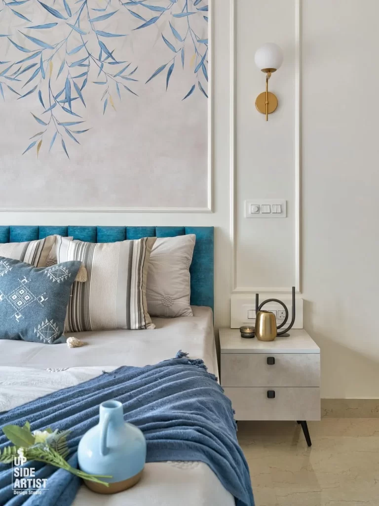 Contemporary Blue Headboard with Botanical Mural