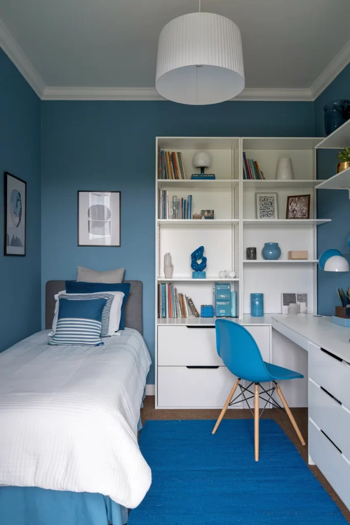 Compact Blue and White Study Bedroom