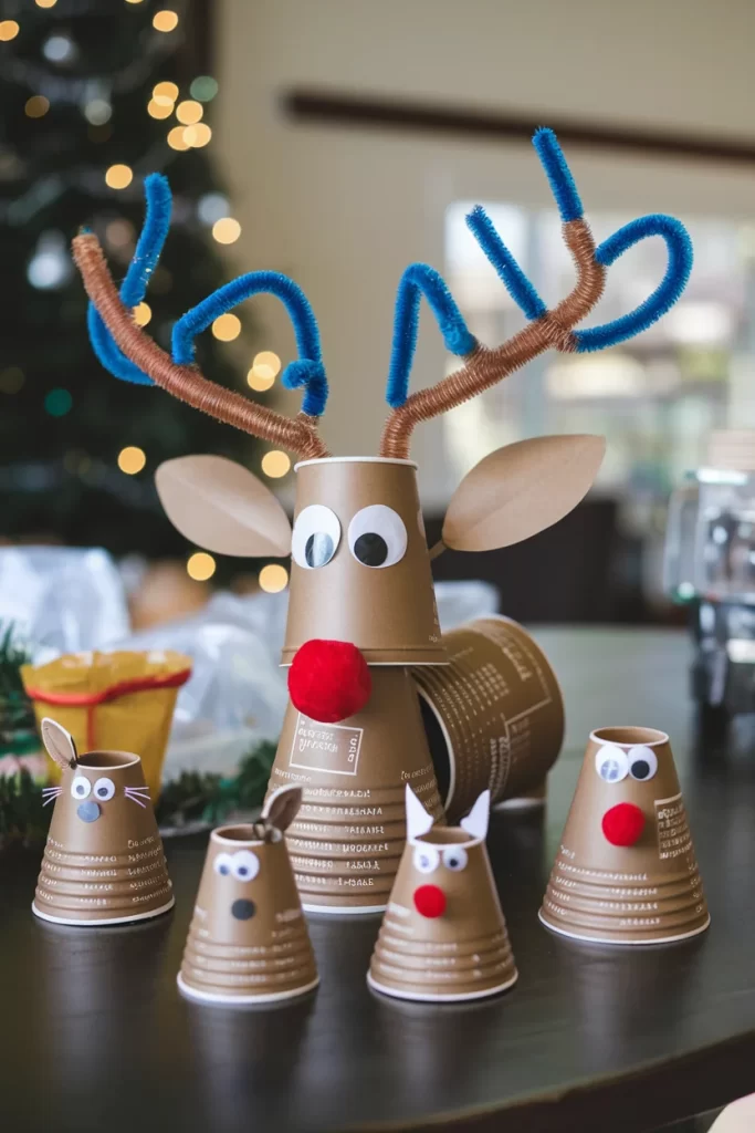 - Create family of different sized reindeer using various cup sizes