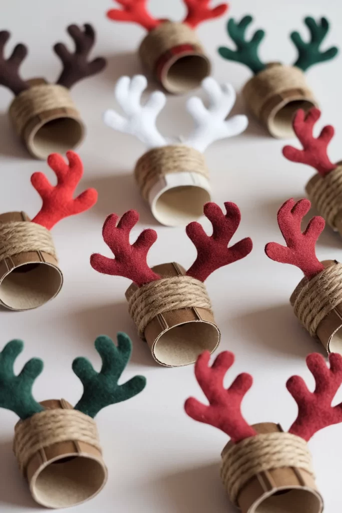 Materials: Toilet paper rolls, twine, colored felt, scissors, craft knife, glue