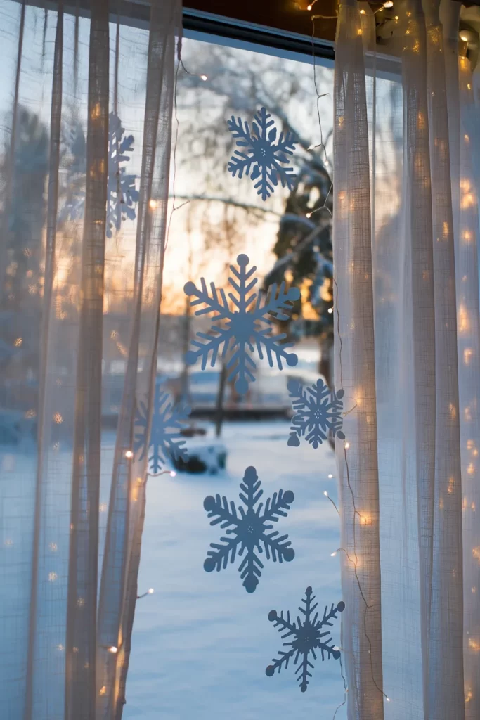- Hang snowflake garland in front of lights