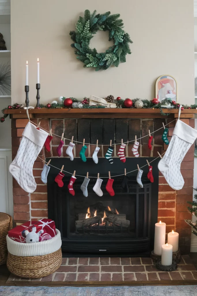 - Attach mini stockings with small clothespins