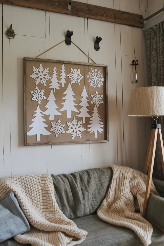 Materials: Wooden frame, kraft paper background, white paper, scissors, glue, pencil