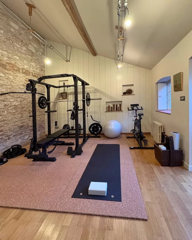 Combine exposed beams, natural wood, and traditional materials for a countryside gym atmosphere. You can repurpose vintage elements like old barn wood for accent walls and storage. The organic textures create warmth that makes exercise feel more like recreational activity. Position modern equipment thoughtfully to complement rather than clash with rustic elements. Add natural fiber rugs and mats that provide comfort while maintaining the authentic aesthetic. Your stress levels decrease in environments that connect you with natural materials and textures. The timeless design approach ensures your space never feels dated or trendy. Install period-appropriate lighting fixtures that provide adequate illumination with character. Ventilation becomes important with natural materials that respond to humidity changes. You create a unique training environment that reflects personal style and preferences. The cozy atmosphere encourages longer workout sessions and regular use patterns.