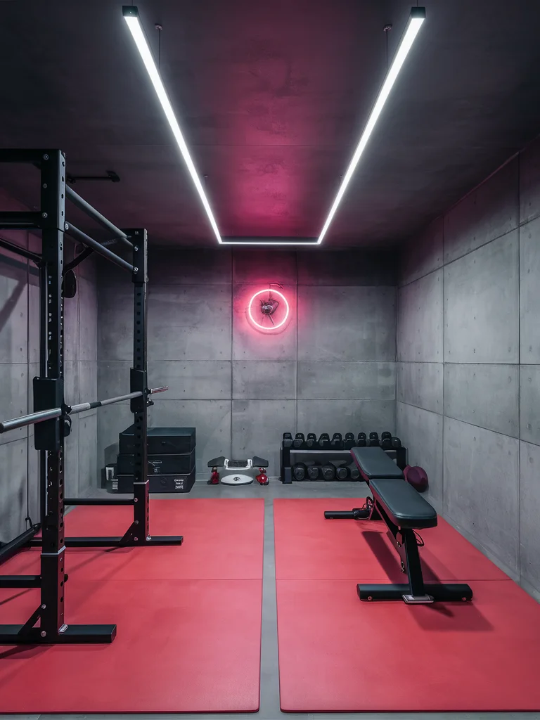 Create an intense workout environment using dark walls and dramatic lighting effects. You can install colored LED strips that change based on workout intensity or music rhythm. The darker palette helps focus attention inward rather than external distractions. Position mirrors strategically to maintain safety while preserving the intimate atmosphere. Add motivational elements like artwork or quotes that inspire peak performance. Your energy levels increase in spaces designed specifically for physical exertion and challenge. The contained feeling promotes deeper concentration during complex movement patterns. Install sound systems that deliver powerful audio without disturbing other household areas. Temperature control becomes easier in smaller, enclosed training environments. You develop mental toughness training in spaces that feel serious and purposeful. The dramatic design makes every workout session feel like an event worth attending.