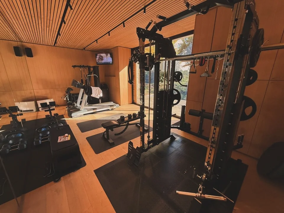 Design a sleek training space with contemporary wood slats and integrated lighting systems. You can create zones using different flooring materials without building permanent walls. The streamlined aesthetic eliminates visual clutter that can distract from focused workouts. Position equipment to maintain clear sightlines throughout the entire space. Add plants strategically to soften hard edges while improving air quality naturally. Your workouts become more mindful in this serene environment that promotes concentration. The neutral color palette works with any equipment brands or future additions. Install smart home features like automated lighting and climate control for convenience. Storage solutions hide behind clean facades to maintain the uncluttered appearance. You increase home resale value with this sophisticated approach to fitness space design. The professional look makes you feel proud to show off your home gym to visitors.
