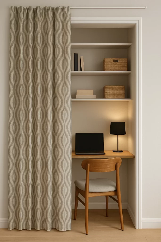 Tuck It Behind the Curtain: Discreet Work Nook Setup