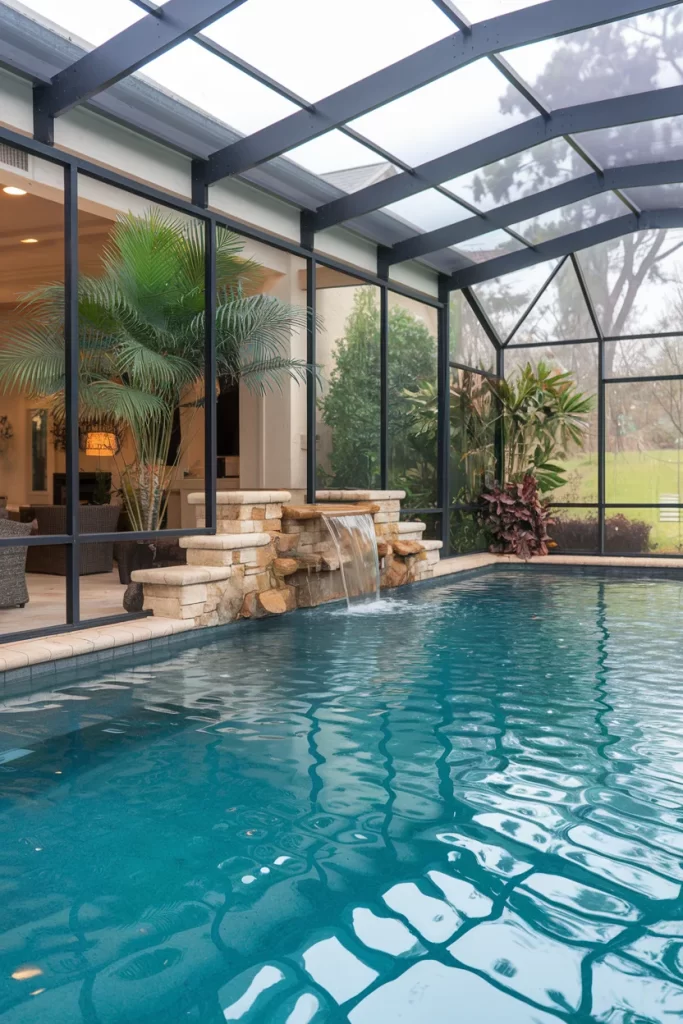 Enclosed Pool with Waterfall Feature