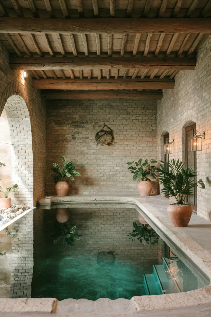 Mediterranean-Inspired Indoor Pool with Natural Materials