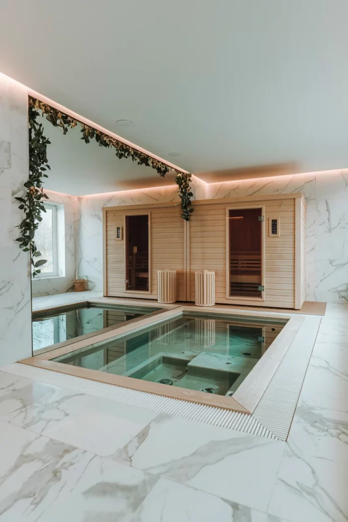 Spa-Inspired Indoor Pool with Sauna Integration