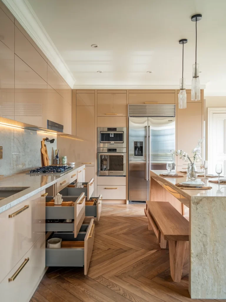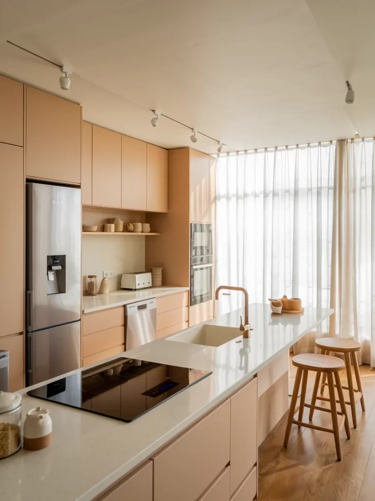 Modern Warm Neutral Kitchen with Sleek Cabinets